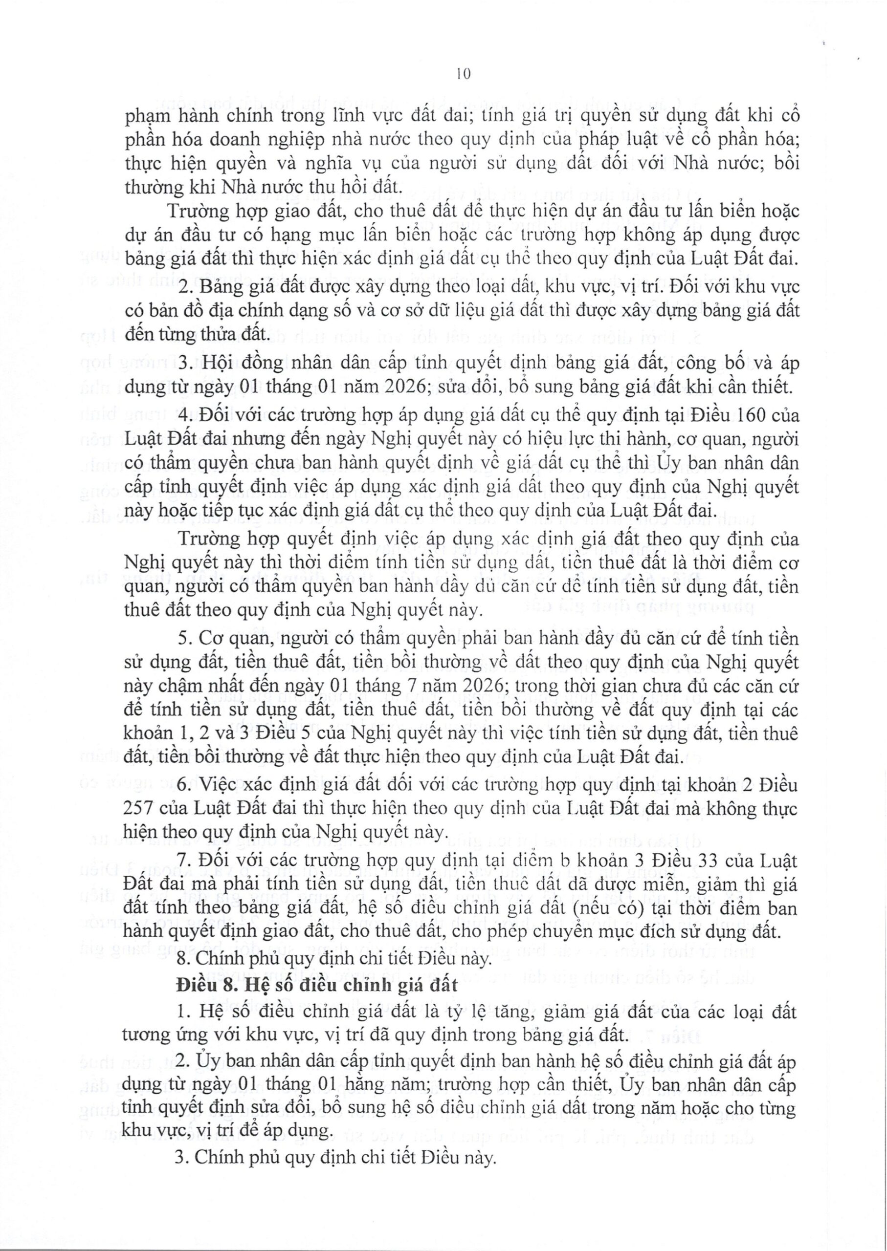 Một trong những nội dung quan trọng nhất của Nghị quyết số 254/2025/QH15 là việc điều chỉnh căn cứ tính tiền bồi thường khi Nhà nước thu hồi đất. Thay vì áp dụng giá đất cụ thể như quy định tại Luật Đất đai năm 2024, điều 5 Nghị quyết 254/2025/QH15 quy định bảng giá đất 2026 và hệ số điều chỉnh giá đất được sử dụng làm căn cứ tính tiền sử dụng đất và tiền bồi thường cho người dân khi Nhà nước thu hồi đất.