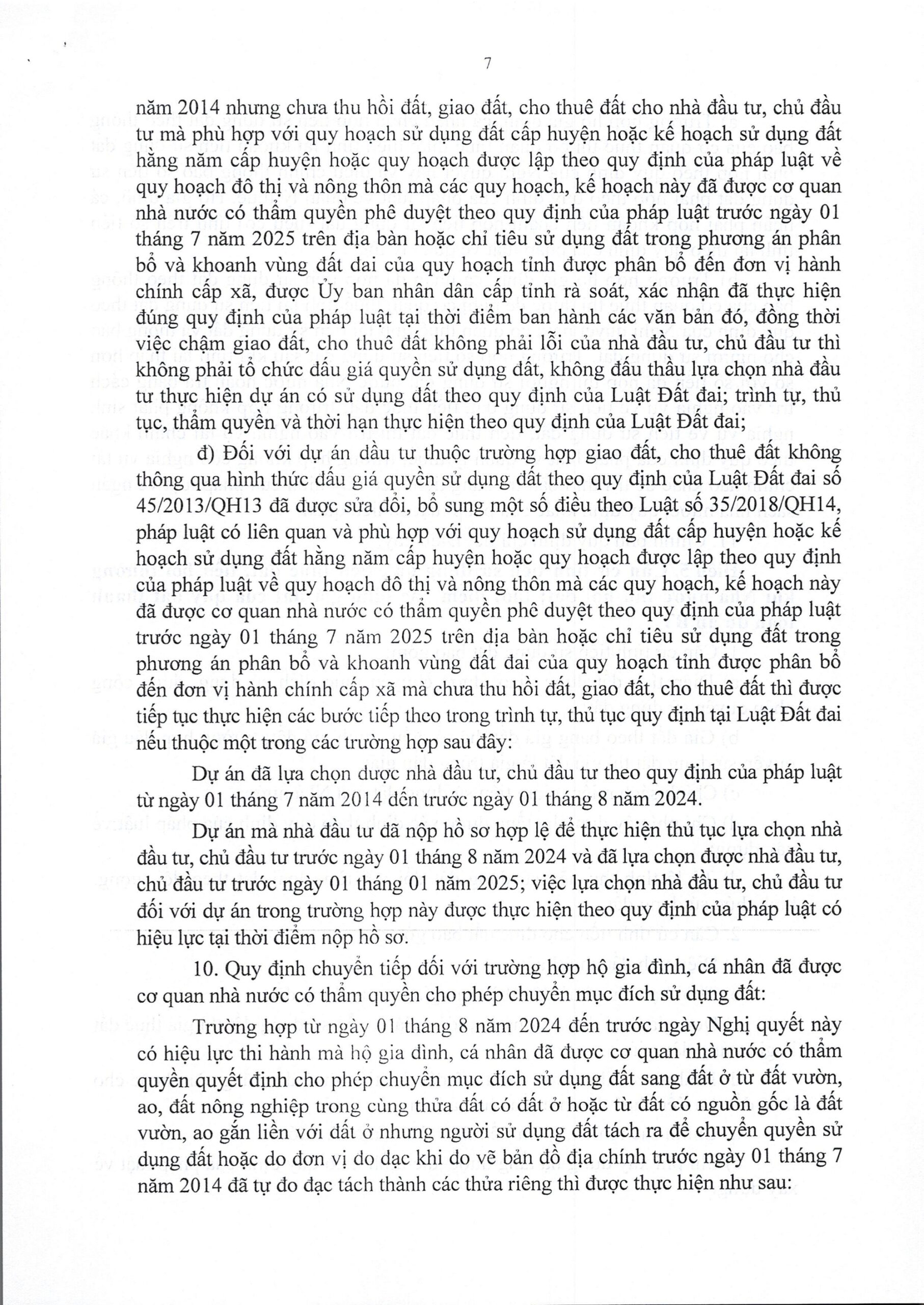 Đối với hợp thửa, nghị quyết không còn yêu cầu các thửa đất phải cùng mục đích sử dụng, cùng thời hạn hoặc cùng hình thức trả tiền sử dụng đất. Điều này tạo điều kiện thuận lợi cho việc sắp xếp lại đất đai trong cùng hộ gia đình, phù hợp với nhu cầu sử dụng thực tế.